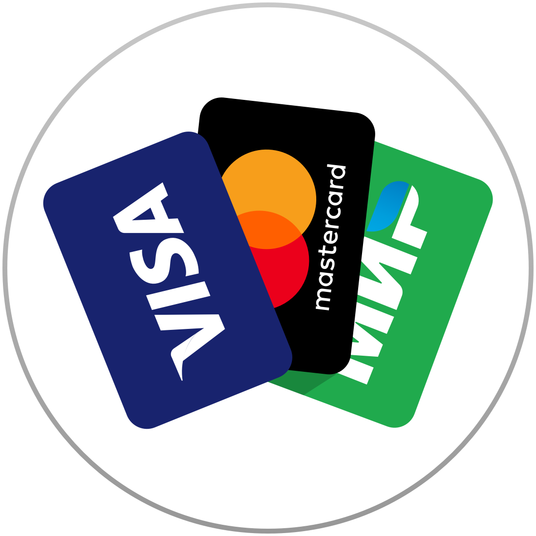 Бесконтактными банковскими картами платежных систем Masterсard и Мир и Visa.